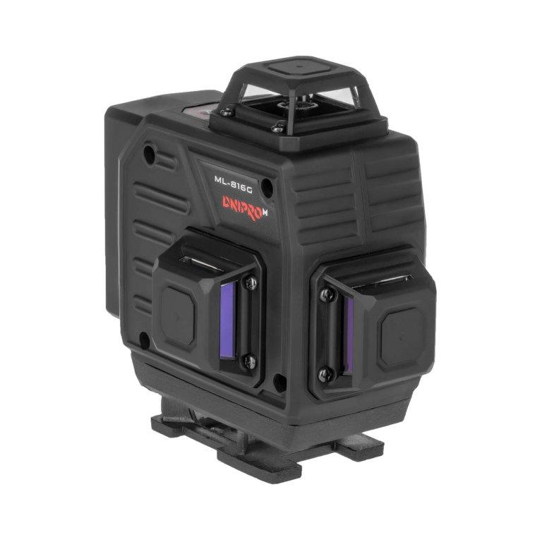 Лазерний рівень Dnipro-M ML-816G — професійний інструмент, призначений для розмітки горизонтальних та вертикальних площин як усередині приміщень, так і зовні. Інструмент має 4 зелені промені на 360°. Використовується при виконанні робіт з монтажу, оздоблювальних робіт при кладці плитки, поклейці шпалер, установці підвісних стель і т. д.
